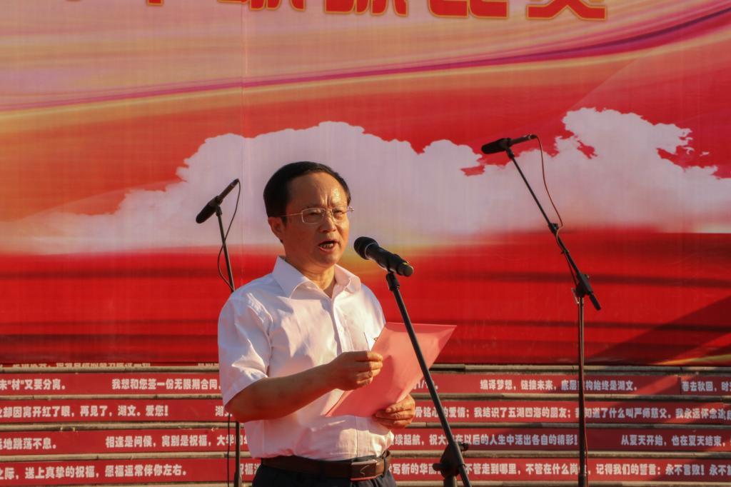 王为一指出,学校事业发展蓝图,湖北“建成支点、走在前列、谱写新篇”,襄阳“一极两中心”建设,都需要我们一步一个脚印走,一锤接着一锤敲,一棒接着一棒跑,我们用歌声唱出湖北文理学院人迈向新征程的豪迈,自信地迈上新征程,牢记初心与使命,开拓进取、永不懈怠,一往无前。