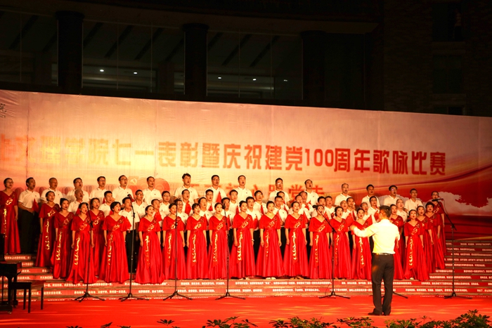王为一代表学校党委致辞。他指出,今晚的活动,我们用歌声祝福伟大的中国共产党100岁生日快乐,用歌声抒发爱党爱国情怀,讴歌党的丰功伟绩,永远听党话跟党走。