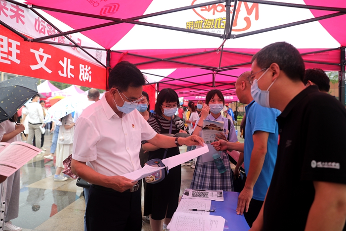 在各学校招生咨询处,唐峻、丁世学慰问招生工作人员,叮嘱大家要注意个人安全,做好个人防护工作。现场,唐峻、丁世学耐心细致地向考生及家长介绍学校基本情况、解读招生政策。唐峻、丁世学指出,新高考考的第一年,要把招生政策解读更清楚一点、明白一点,要把学校的优点、亮点、特色展现出来,做好招生宣传工作,引导更多的优质生源填报湖北文理学院。