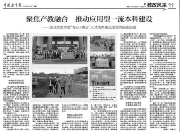 华中科技大学郑俊杰教授说:“湖北文理学院土木工程专业的人才培养方案经过两次修订,理论和实践教学环节都有针对性的改变,理论教学环节占比从68.9%降低到60.3%,实践教学环节占比从31.1%上升到39.7%,充分体现了地方高校应用型人才培养的特点。”