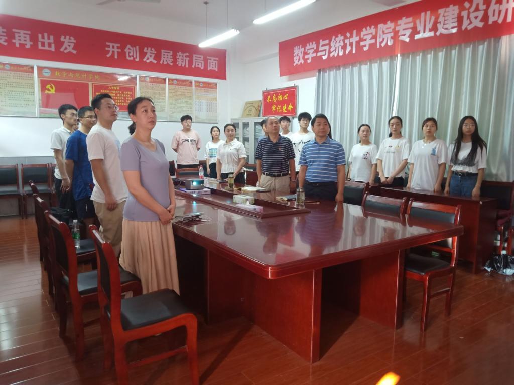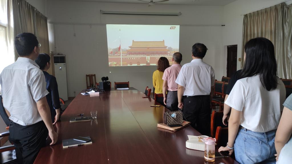 观看庆祝大会直播时,数统学院师生肃立唱国歌
