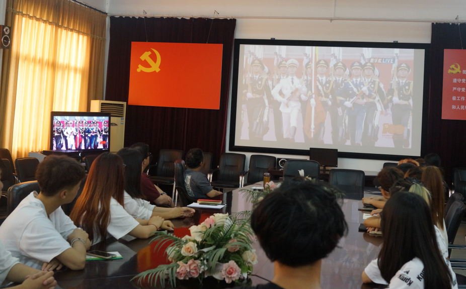 学工处组织辅导员、学生代表观看庆祝大会直播