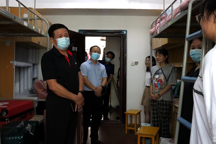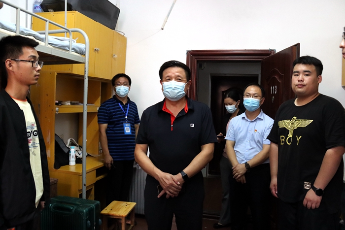“同学们都来自哪里?”“对学校印象怎么样?”“食堂的饭好不好吃?”……在体育学院、政法学院、音乐与舞蹈学院、美术学院新生宿舍,丁世学与同学们亲切交谈,细心询问同学们到校后的生活情况,叮嘱大家尽快适应学校环境,珍惜大学的学习时光,挑起肩负的责任与使命,确定四年的奋斗目标,同学之间相互帮助相互督促,四年后都能实现自己的梦想。并提醒同学们遵守学校的疫情防控管理规定,做好日常防护。