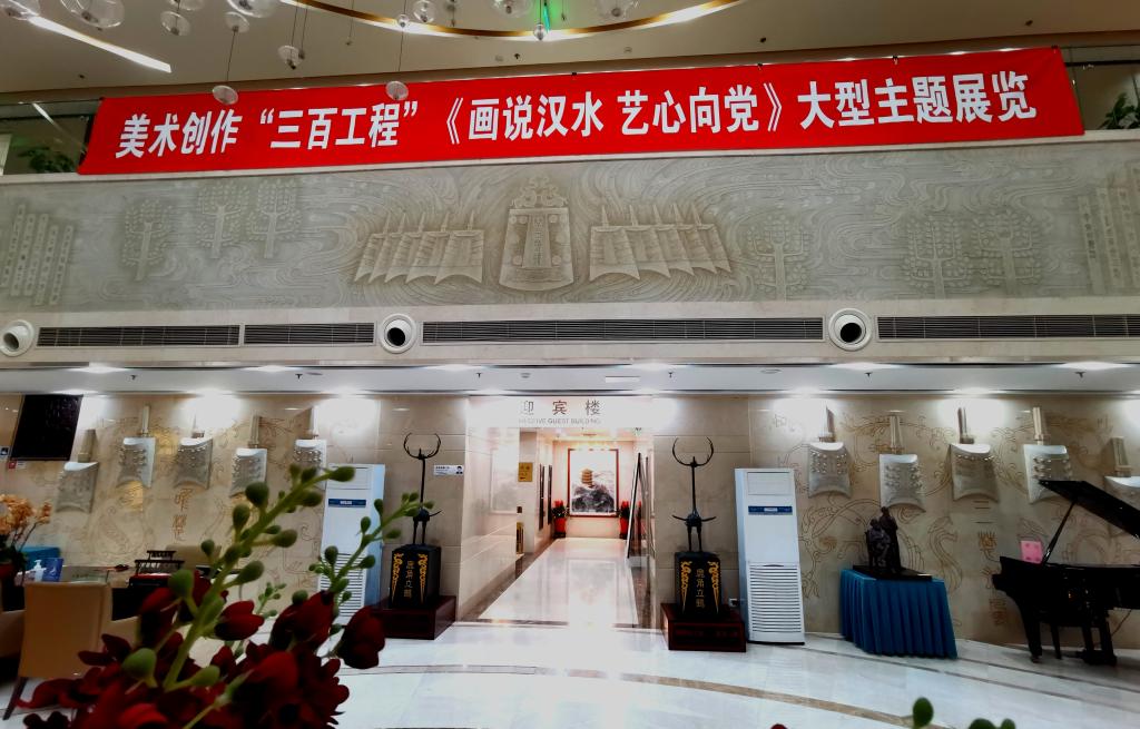 庆祝建党100周年主题创作“三百”工程“艺心向党、画说汉水”美术作品展,展出的是100位当代画家潜心3年多时间创作的100幅汉水题材的美术作品,包括新时代汉水、美丽汉水、人文汉水三大主题。展览用绘画的方式和语言,纪录、描绘了汉江深厚的文化底蕴,展示了新时代汉江流域繁荣昌盛的美好画卷。该活动由我校和湖北省学院空间艺术研究院共同发起,我校美术学院多名教师参与创作。