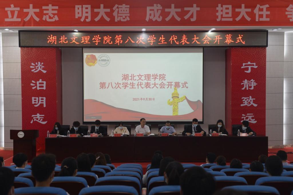 (校学生会 通讯员 敦雯瑾 臧郁雯) 9月30日下午,学校第八次学生代表大会顺利召开。学校党委副书记、副校长张樊出席开幕式并致辞,对大会召开表示祝贺,鼓励青年学生争做堪当民族复兴大任的时代新人。学工部部长周建修,二级学院团委书记和200名学生代表参加开幕式,开幕式由校团委副书记龚丽丽主持。湖北汽车工业学院、湖北科技学院等兄弟高校学生会对大会的召开发来贺信。