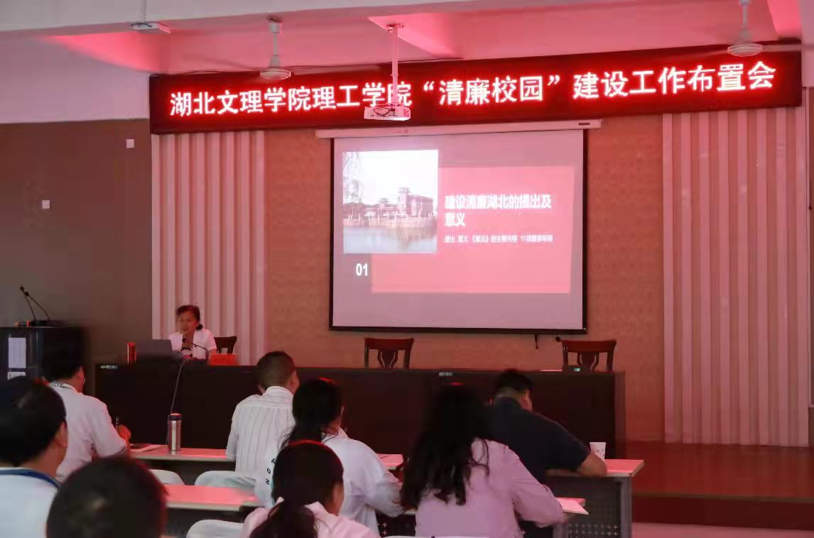 宋双伟指出,理工学院开展“清廉校园”建设是深入贯彻落实省委《关于推进清廉湖北建设的意见》和省教工委《关于推进清廉学校建设的实施意见》精神的重要举措。宋双伟强调,开展清廉学校建设是高校全面从严治党的重要抓手,为提高高校治理水平提供了重要途径,也是推进高校廉政教育和廉洁文化建设的重要途径。