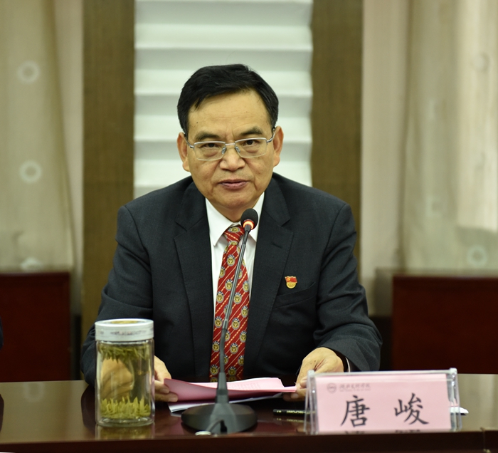 唐峻强调,要坚守立德树人。培养社会主义建设者和接班人是教育的根本目标。校领导、各位委员要进一步加强学习,掌握高等教育规律、教书育人规律、学生成长规律。我们必须充分发挥在哲学社会科学研究和教学上的优势,让正确的世界观、人生观、价值观成为青年学生成长成才的基本支柱和精神底色,教育引导学生“扣好人生第一粒扣子”,真心认同、自觉践行社会主义核心价值观和道德规范,做到明大德、守公德、严私德。