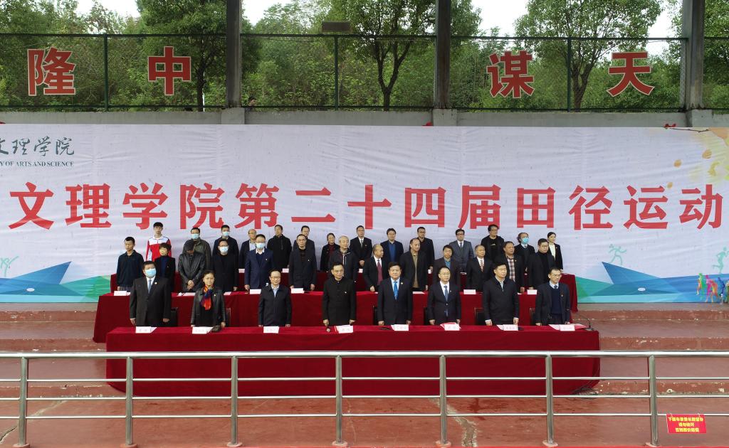 校领导丁世学、王为一、宋双伟、朱青林、曹健,第二十四届田径运动会组委会副主任,各二级学院院长、书记出席开幕式。