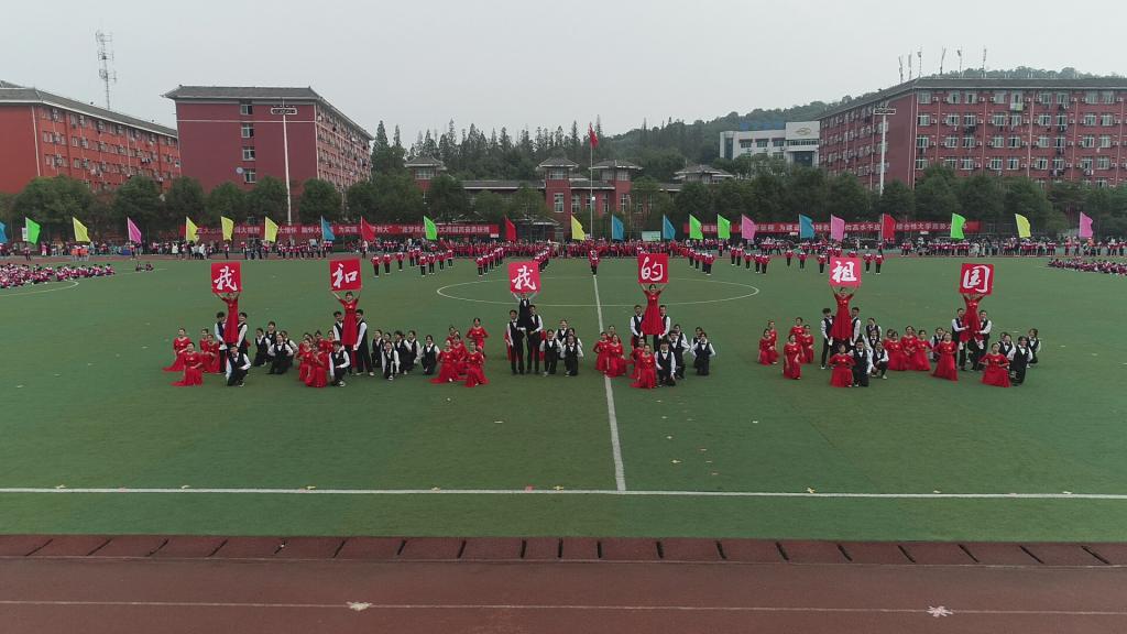 体育舞蹈队员身着由五星红旗点缀着的红裙与黑色西服,随着《我和我的祖国》旋律翩翩起舞,歌颂着对祖国的无限热爱;一面五星红旗在红船上冉冉升起, 名学生组成的红色巨轮,向中国共产党成立100周年献礼。