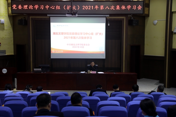 襄阳市党史学习教育宣讲团成员、市史志研究中心副主任叶和平,为大家作习近平总书记“七一”重要讲话精神专题辅导报告。党委副书记王为一领学习近平总书记在中央人才工作会议上的重要讲话精神。副校长朱青林解读了《中国共产党机构编制工作条例》《机构编制监督检查工作办法》。人事处处长苏顺强、发展规划与政策法规处处长滕建河作交流发言。
