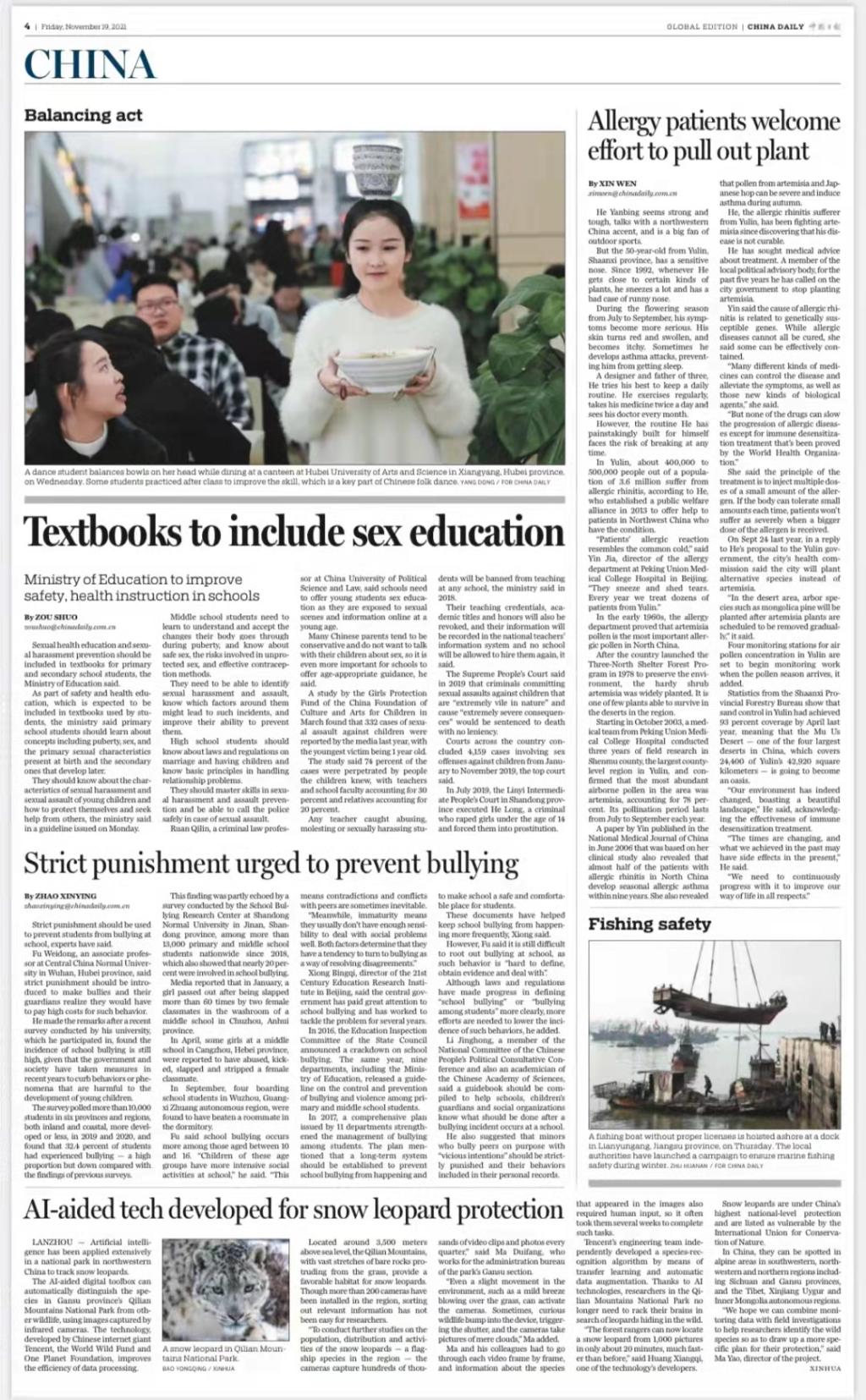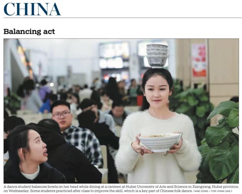 11月19日,《中国日报》(海外版)刊发我校音乐与舞蹈学院学生勤练基本功的图片新闻。