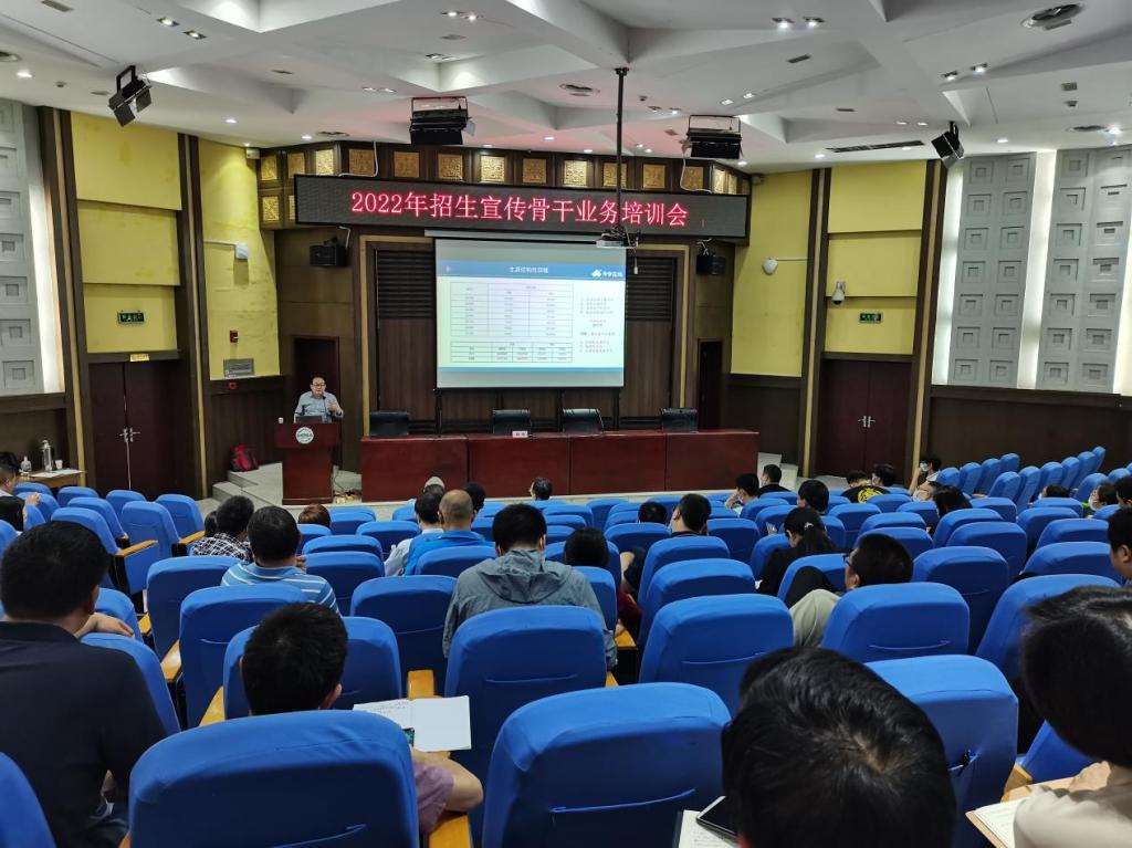 (招就处 通讯员 武静)5月26日下午,学校组织开展2022年度招生宣传骨干业务培训。党委副书记、副校长张樊全程参与培训。各二级学院招生分管领导、专业负责人、招生站长、招生联络员以及机关直附属单位招生联络员参加本次培训。培训会由招就处处长鲍国昌主持。
