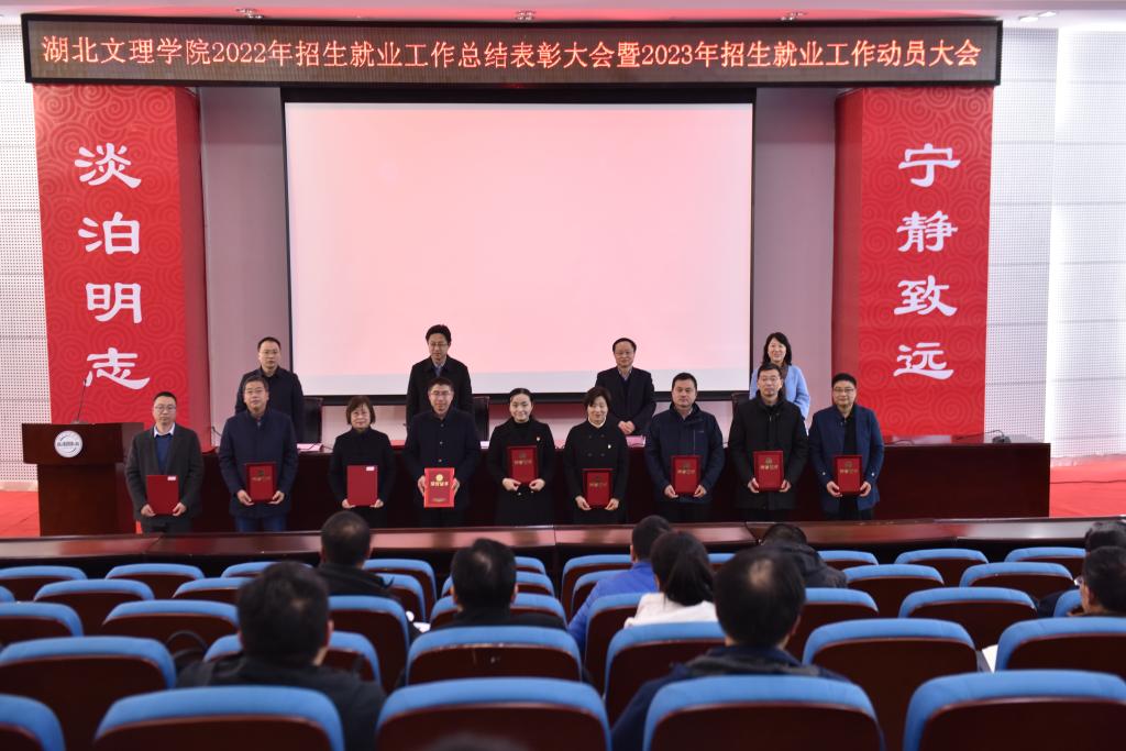 (招生就业工作处 通讯员 龚玲玲)3月22日下午,学校在宁静楼三楼报告厅召开2022年招生就业工作总结表彰大会暨2023年招生就业工作动员大会,深入贯彻落实教育部、省教育厅关于做好招生工作和毕业生就业工作的决策部署,分析研判招生就业形势,抢抓关键期,全力推进2023年招生就业工作。会议由校党委副书记张樊主持。校长张彦铎出席会议并讲话,党委副书记王为一、副校长汪云出席会议。