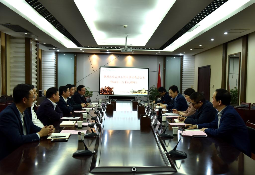 (学校办公室通讯员张亿瑞)5月10日下午,武汉工程大学校友会会长程幼金,党委常委、副校长朱青林等一行来校调研,校长张彦铎在致远楼第三会议室主持调研座谈会,副校长汪云参加会议。