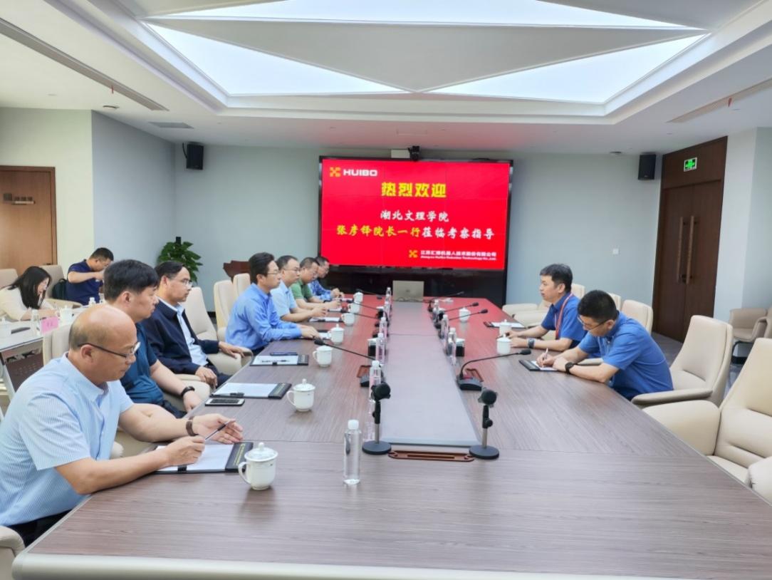 在昆山期间,张彦铎、张樊一行走访江苏汇博机器人技术股份有限公司,与公司负责人围绕人才培养、校地合作、产教融合、实习实训等进行深入交流,并参观企业成果展厅和实训基地。