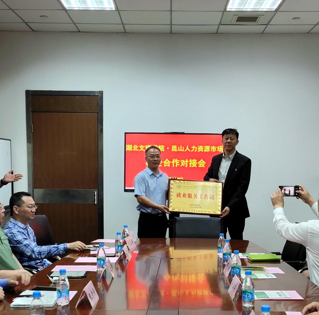 张樊代表学校向昆山人力资源市场集团有限公司授予“就业服务工作站”牌匾。
