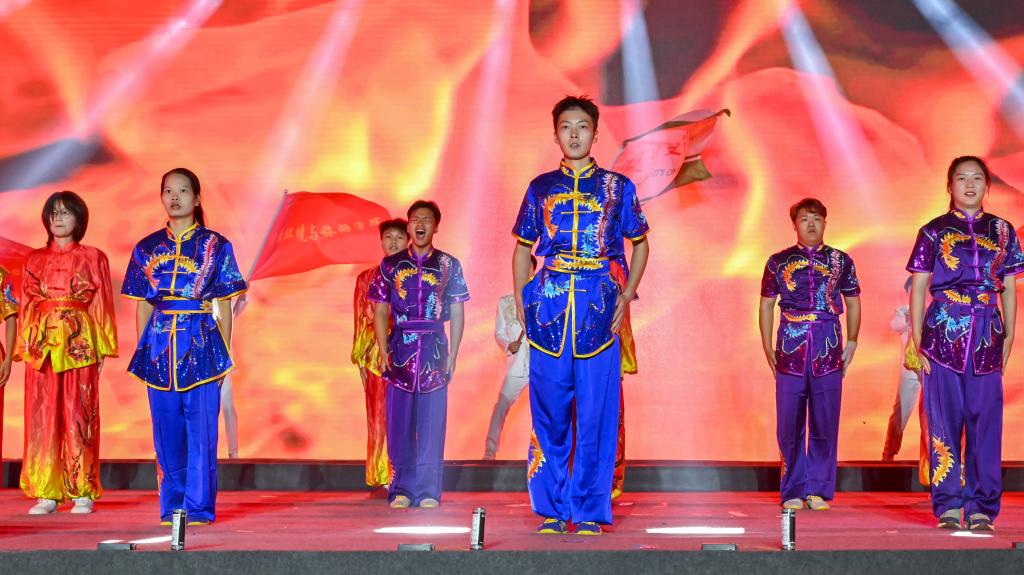 开场舞《湖文先锋》拉开了晚会上半场的序幕,现场流光溢彩、欢声阵阵,展现了湖文学子青春澎湃,活力飞扬的精神风貌;说唱情景剧《新生新遇》,表达了新生对校园美好生活的感受,展现了新生躬耕苦读、求学问道的坚毅决心;研究生及本科生老生代表和新生辅导员代表共同演绎的音乐短剧《快乐课间》,将晚会气氛推向高潮,全场观众齐声合唱,掌声和欢呼声不断;广场舞《防诈》通过张扬的艺术形式给同学们上了一堂生动的防骗教育课,引导学生树立安全防范意识,拒绝与诈骗“结缘”。民族健身操《中华家园》融合了16个少数民族传统舞蹈元素,展现了各族儿女在中华民族大家庭中手足相亲、守望相助。
