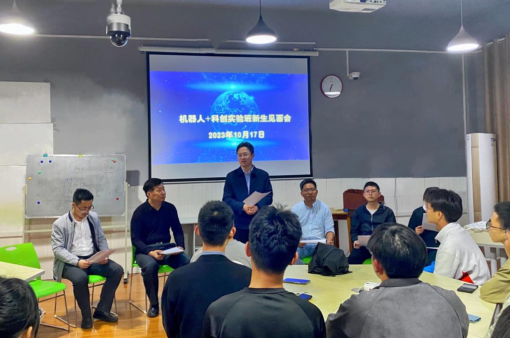 (创新创业教育学院 通讯员 秦涛 高锡燕)10月17日晚,首届机器人+科创实验班新生见面会在创新创业教育学院举行,校长张彦铎出席并寄语科创班首届新生,要自信执着、团结协作,坚持走创新之路,争取多出硬核成果。