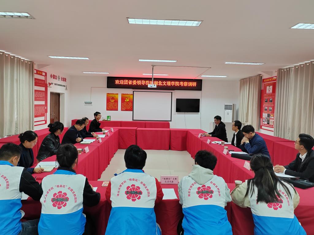 (通讯员 李竹颖)11月10日下午,共青团湖北省委副书记徐本禹、共青团湖北省委少年部部长汪锐一行到我校考察调研,参观“格桑花之家”展厅并召开座谈会。共青团襄阳市委副书记丁超参加调研,学校党委副书记、副校长张樊接待考察团一行。