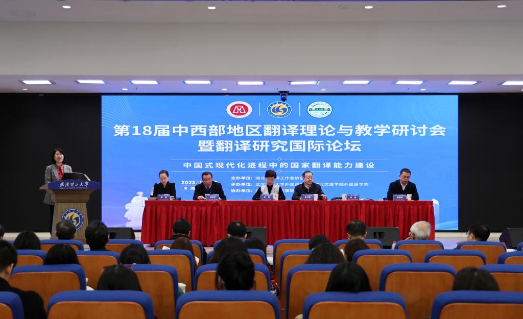 本次研讨会暨高级别国际论坛中外专家学者云集,聚焦中国式现代化进程中的国家翻译能力建设主题,围绕文明多样性与地方文化翻译、行业翻译、技术赋能翻译教学及专业建设与人才培养等话题开展讨论交流,深入探讨如何提升中西部地区翻译研究与教学的总体水平,加强中西部地区高校、政府、企业、研究机构在翻译人才培养中的协同创新,提高语言服务人才的培养质量,助力中西部地区区域社会经济发展与对外文化交流。华中科技大学许明武教授、广东外语外贸大学蓝红军教授、河北师范大学李正栓教授、北京大学Allen Amrollah Hemmat教授、英国利兹大学Martin Ward博士、加拿大渥太华大学Kizito Tekwa博士等分别作主旨演讲。我校外国语学院副院长袁在成教授主持专家主旨论坛、平行论坛交流成果汇报会及大会闭幕式;王林博士、郭笑甜博士分别主持平行论坛并交流发言,吴慧勇博士、邓捷博士和李丹阳老师分别作平行论坛发言。