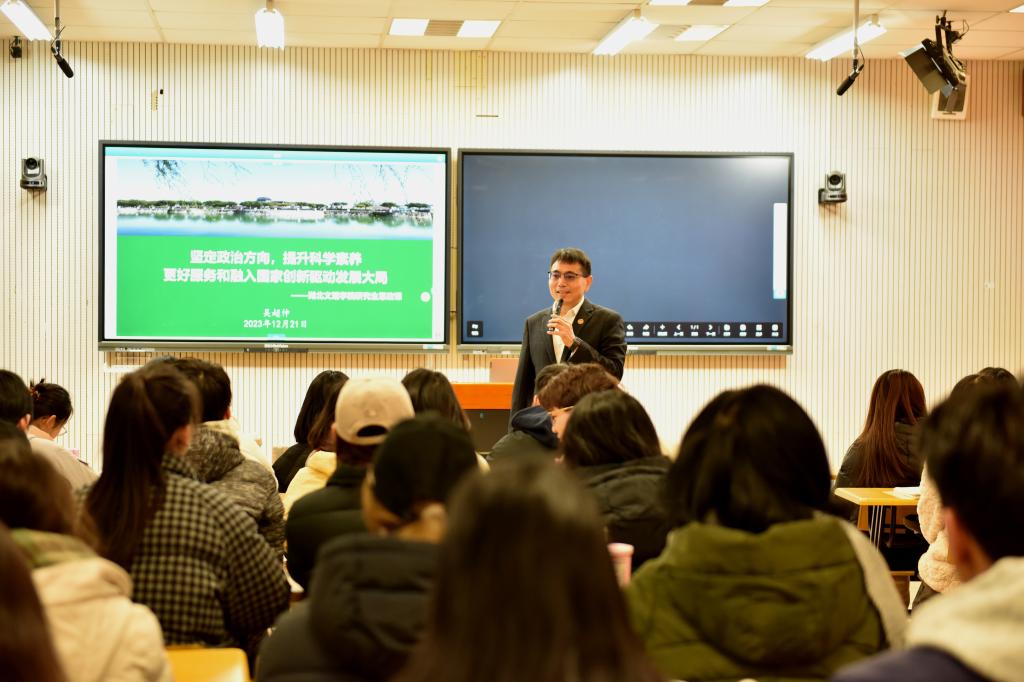 (学校办公室 通讯员 王帅)12月21日,学校党委书记吴超仲以《坚定政治方向 提升科学素养 更好服务和融入国家创新驱动发展大局》为题,为学校60余名研究生代表讲授了一堂生动鲜活的思政大课。