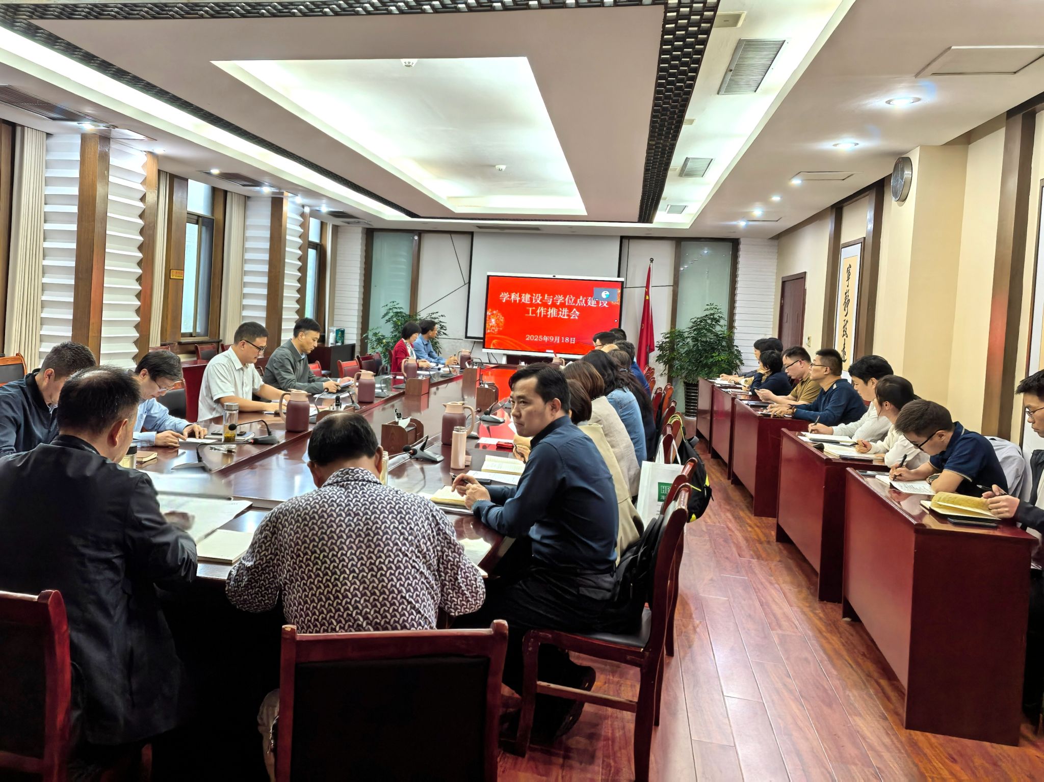 会议分为两个阶段。在硕士学位点建设专题会上,研究生院院长吴华伟汇报了学校硕士学位点专项合格评估参评准备、2026年拟申报硕士学位点基本情况以及学科分层分类建设思路。2021年新增9个硕士学位点所在二级学院负责人分别汇报了专项合格评估进展,并提出推进措施,确保年底前所有指标达标。拟申报硕士学位点的二级学院负责人汇报了申硕条件对标情况,表示将进一步凝练学科方向,整合优势资源,力争尽快达到申报要求。