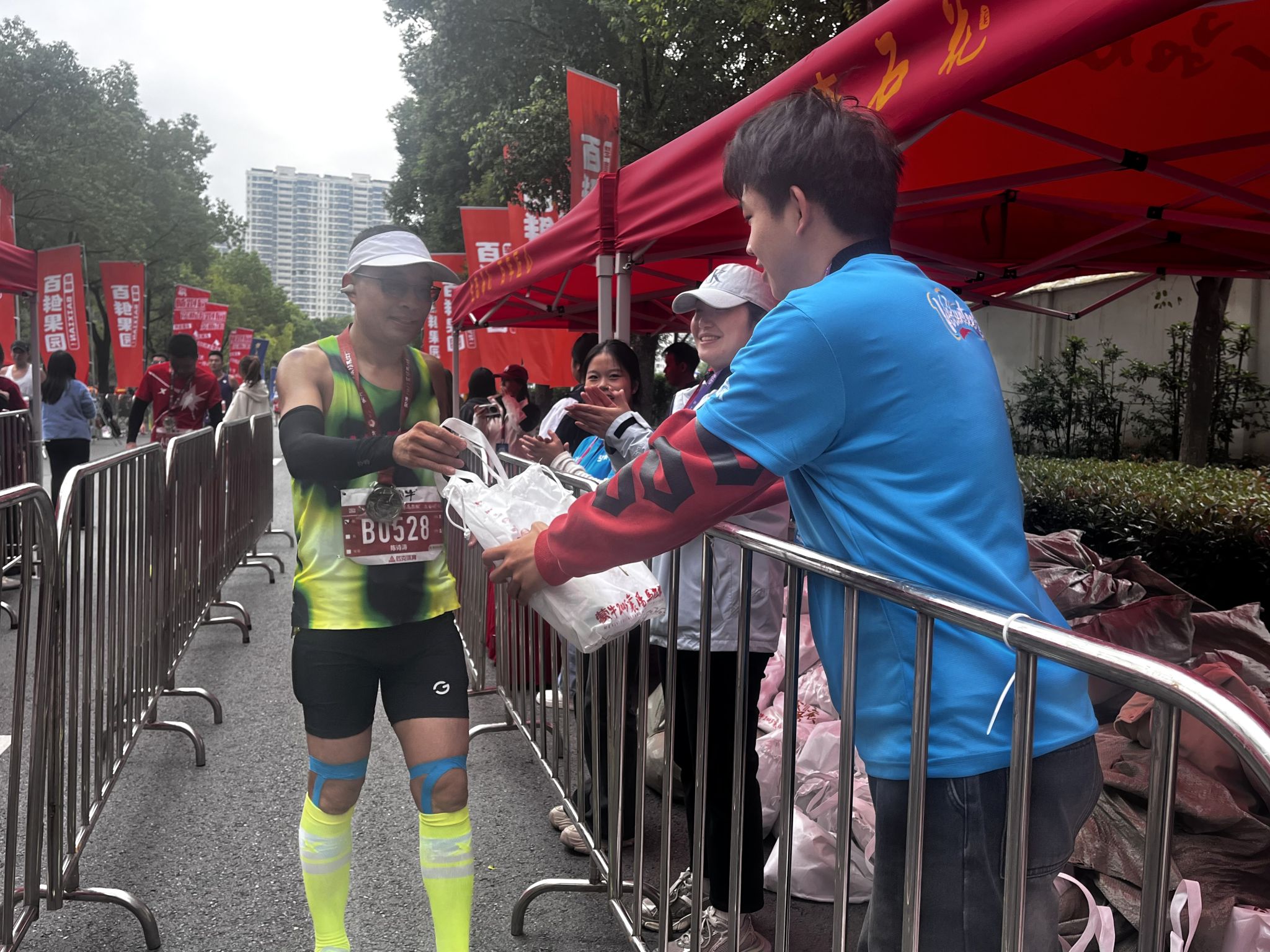 赛道内外,湖文志愿者服务赛事身影随处可见。