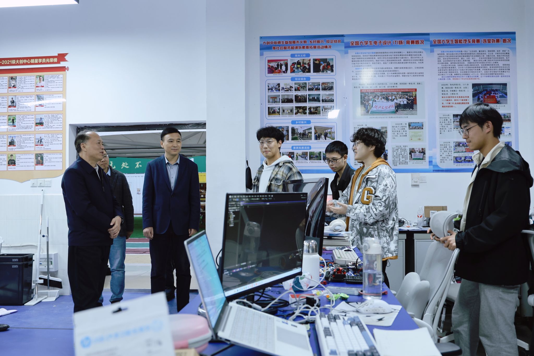 活动期间,张金元一行实地考察参观了湖北科创学院(隆中)的“科创长廊”、机器人实验室、学科竞赛实验室和大学生创业(就业)直播间,听取了学生创业团队的项目与产品介绍,并就学校“宏志助航”培训基地建设、“致远”生涯咨询工作室运行和大学生职业规划大赛等工作进行了针对性指导。