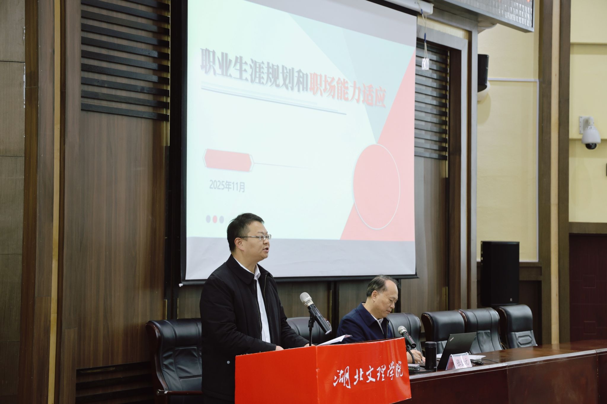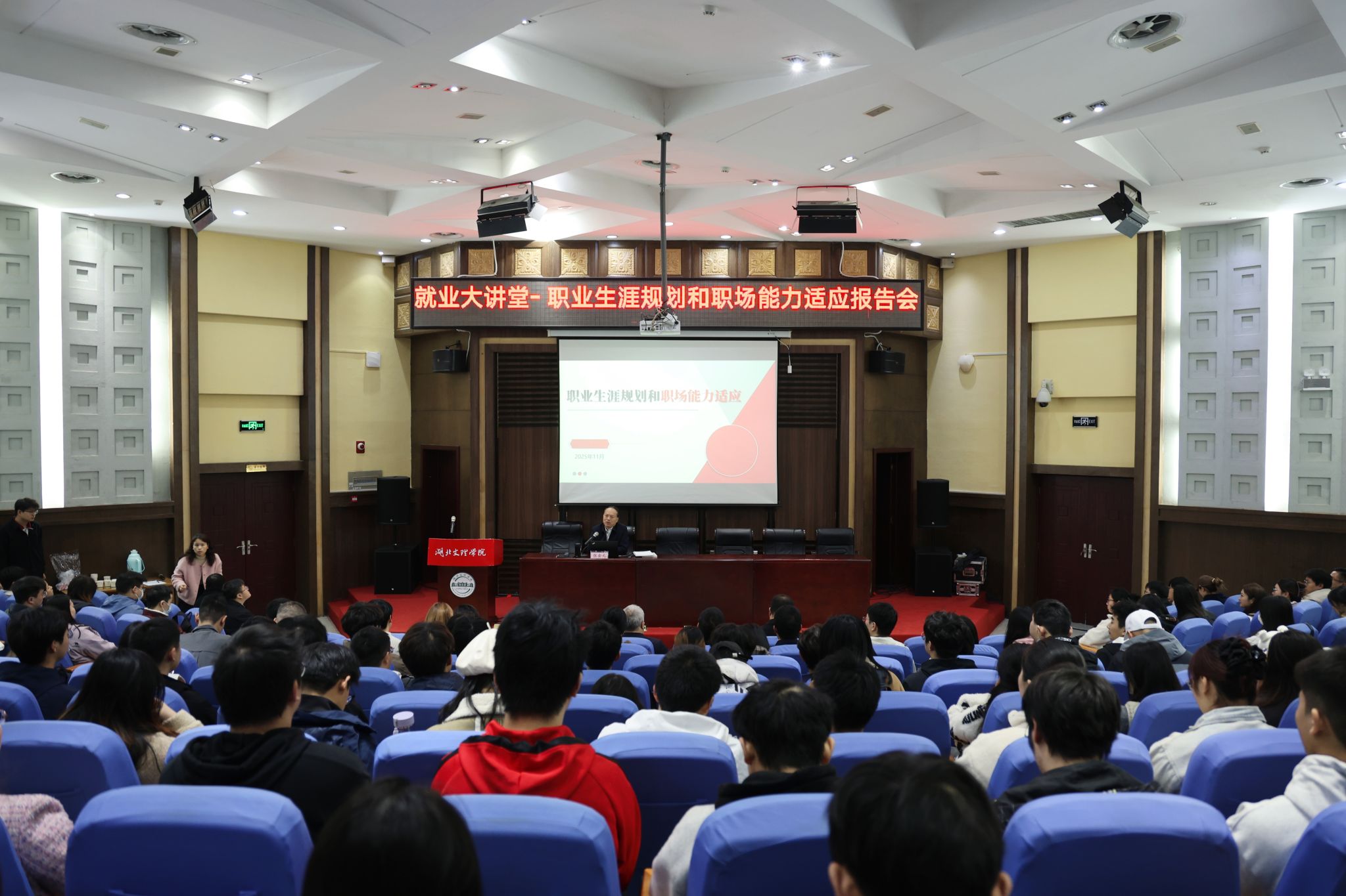 在学校就业大讲堂(第七期)活动中,张金元以“职业生涯规划与职场适应能力”为题作专题报告。他系统阐述了职业生涯规划的八大理论体系,结合热点案例深入剖析了青年学生面临的职业困惑与发展任务,强调在人工智能时代应注重培养学生多维核心素养,并建议学生工作者加强价值引领与心理支持,助力学生实现从校园到职场的顺利过渡。在互动环节,学校师生踊跃提问,张金元结合具体案例逐一解答,帮助师生厘清职业发展路径,提升生涯规划与决策能力。各二级学院党委副书记、全体辅导员、职业生涯规划课教师、“宏志助航”计划学员及学生代表到场聆听。