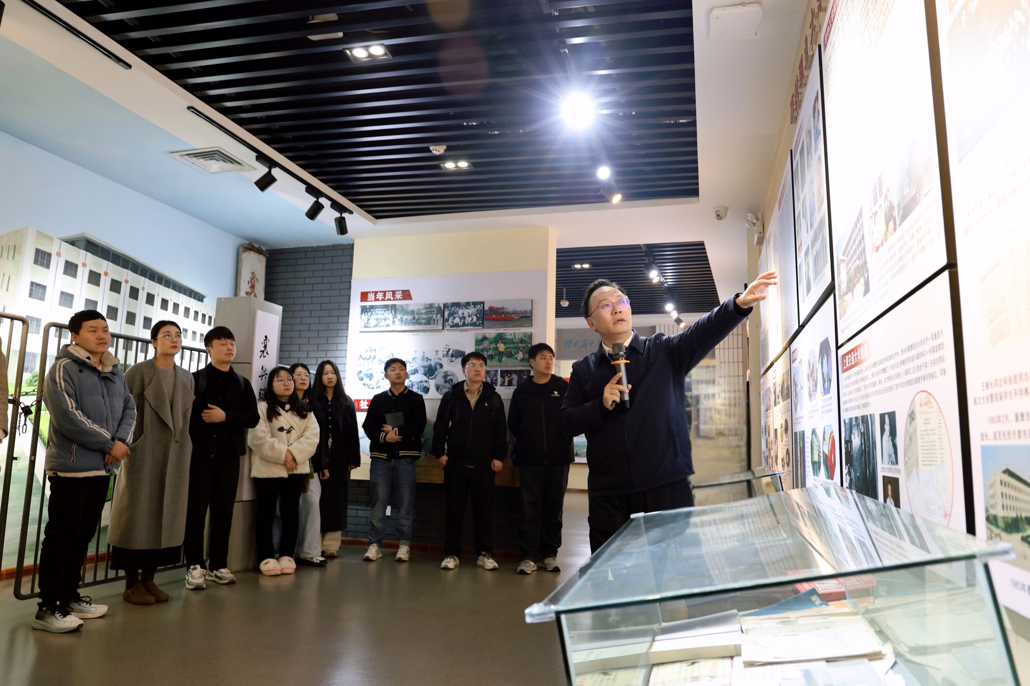 在校史馆,张樊结合一段段记录学校发展历史的文字、一张张定格奋斗瞬间的图片,以及一件件承载历史记忆的实物,系统回顾了学校自1958年襄阳师范专科学校创办以来筚路蓝缕的创业历程,1998年三校合并组建襄樊学院开启的崭新篇章,以及2012年更名为湖北文理学院后实现的跨越式发展,全面讲述了历代“湖文人”六十多年来艰苦奋斗、自强不息的办学历史。他强调,学校的发展离不开一代代教职员工的接续奋斗,新入职教师为学校注入了新鲜血液,带来了新的活力和希望;希望大家尽快熟悉学校的历史文化和发展战略,积极融入学校发展大局,勇担学校“圆梦'创大'、逐梦博点”的责任使命,奋力书写在湖文的成长篇章。