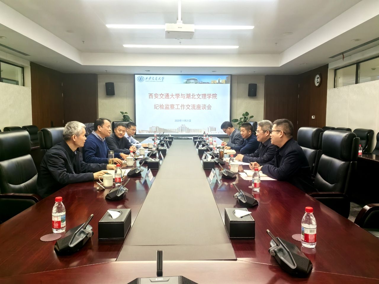 (纪委·监察专员办公室 通讯员 袁园 )11月21日,学校纪委书记、监察专员张宇辉带队赴西安交通大学纪委开展学习交流。西安交通大学党委副书记、纪委书记、监察专员马博虎接待调研组一行并主持座谈,双方围绕纪检监察、校内巡视等工作进行深入交流。