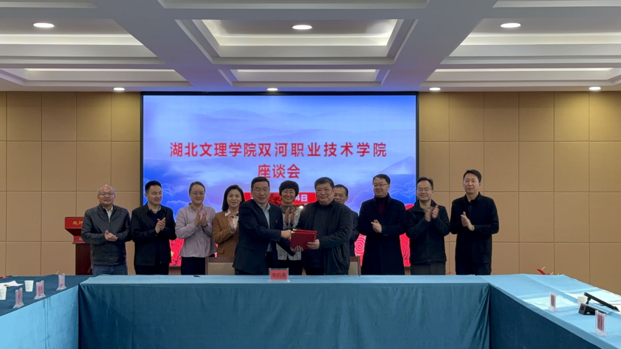 曹健与双河职业技术学院副院长钱伟代表双方签订校际合作协议,围绕人才培养、师资建设、学科科研等方面建立长效合作机制,开启两校优势互补、协同发展新阶段。