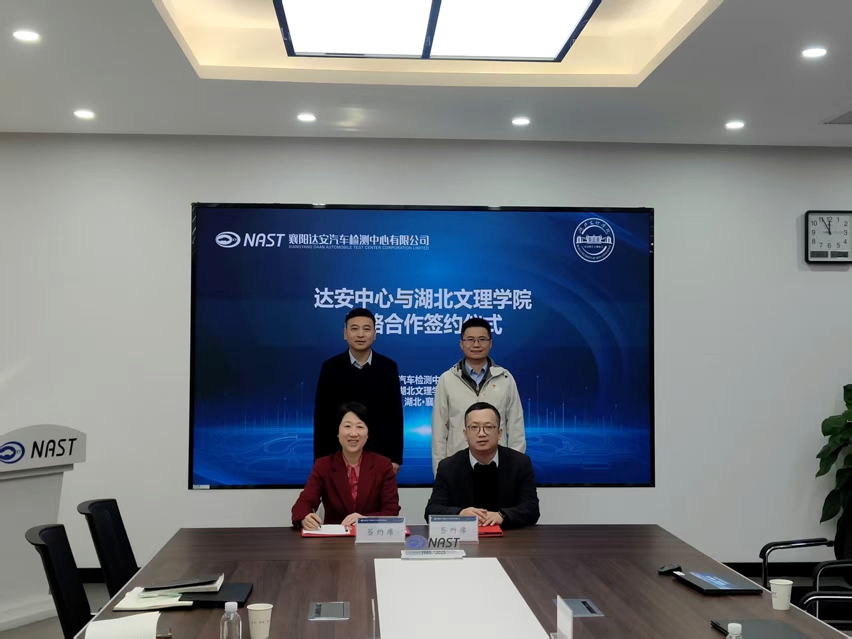 (交通学院 通讯员 陈运星)12月9日,学校校长杜国锋、副校长汪云一行赴襄阳达安汽车检测中心有限公司(简称“达安中心”)调研交流,并出席双方战略合作框架协议签约仪式。达安中心总经理王希诚、副总经理苟斌等接待了杜国锋一行。