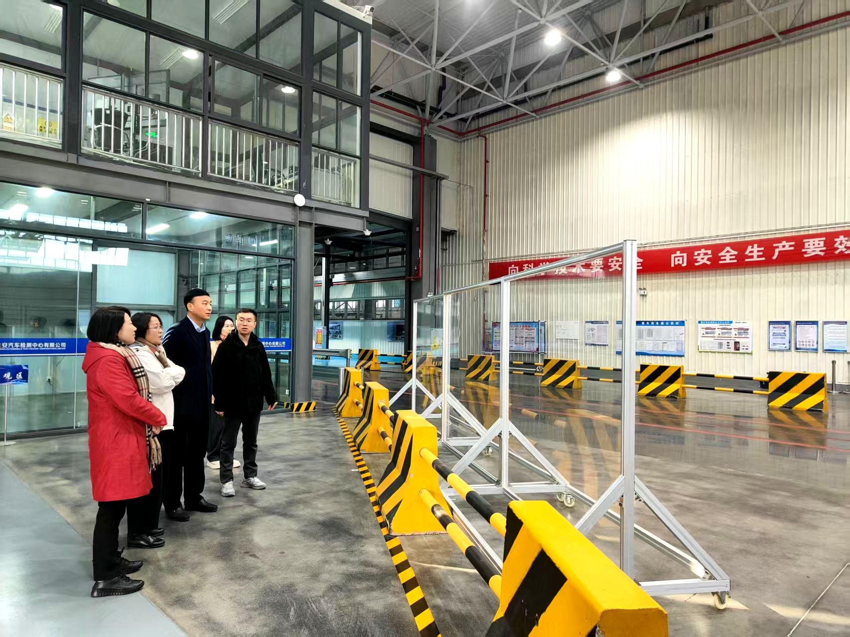 在达安中心副总工程师赵淑华的陪同下,杜国锋一行实地参观了该公司测试场地、碰撞实验室、NVH实验室、电磁兼容实验室、环境风洞等科研设施,详细了解达安中心在汽车检测、智能网联新能源汽车、汽车芯片、低空经济等领域的技术布局和创新能力。