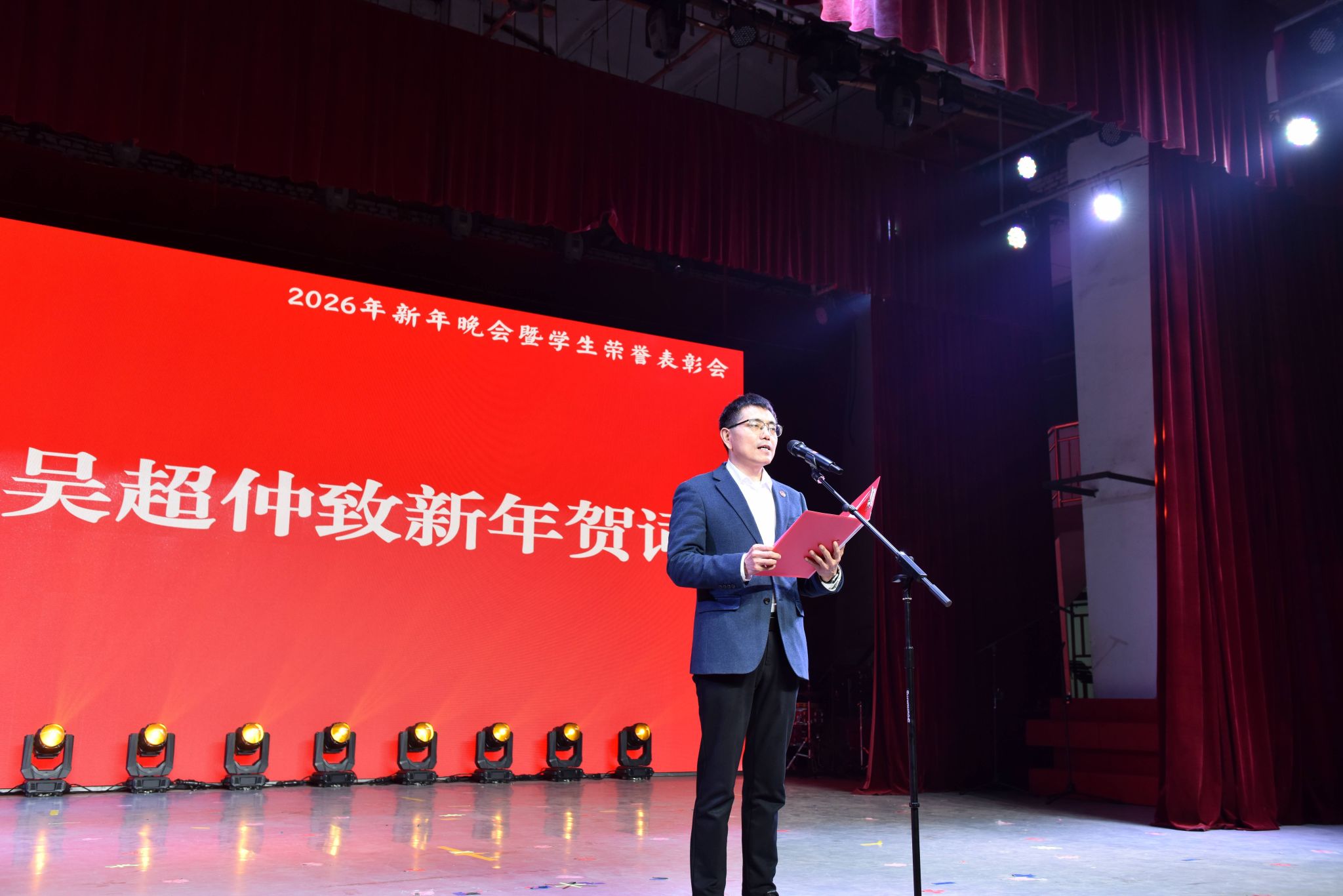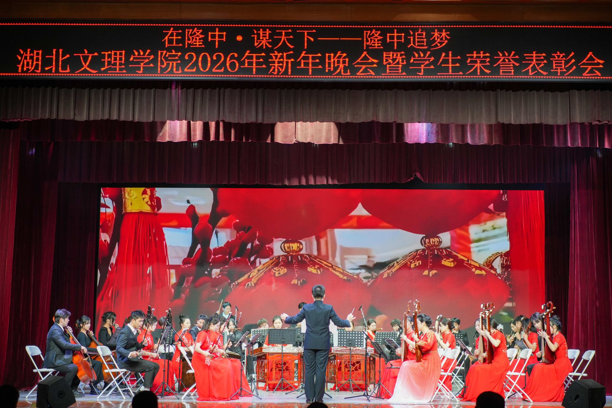 (校团委通讯员 唐棻 张尹琪)12月29日晚,学校举办“在隆中·谋天下——隆中追梦”2026年新年晚会暨学生荣誉表彰会。学校党委书记吴超仲致新年贺辞,校长杜国锋、副校长曹健、副校长杭波、党委副书记王瑶珺分别为获奖集体和个人颁发荣誉证书。