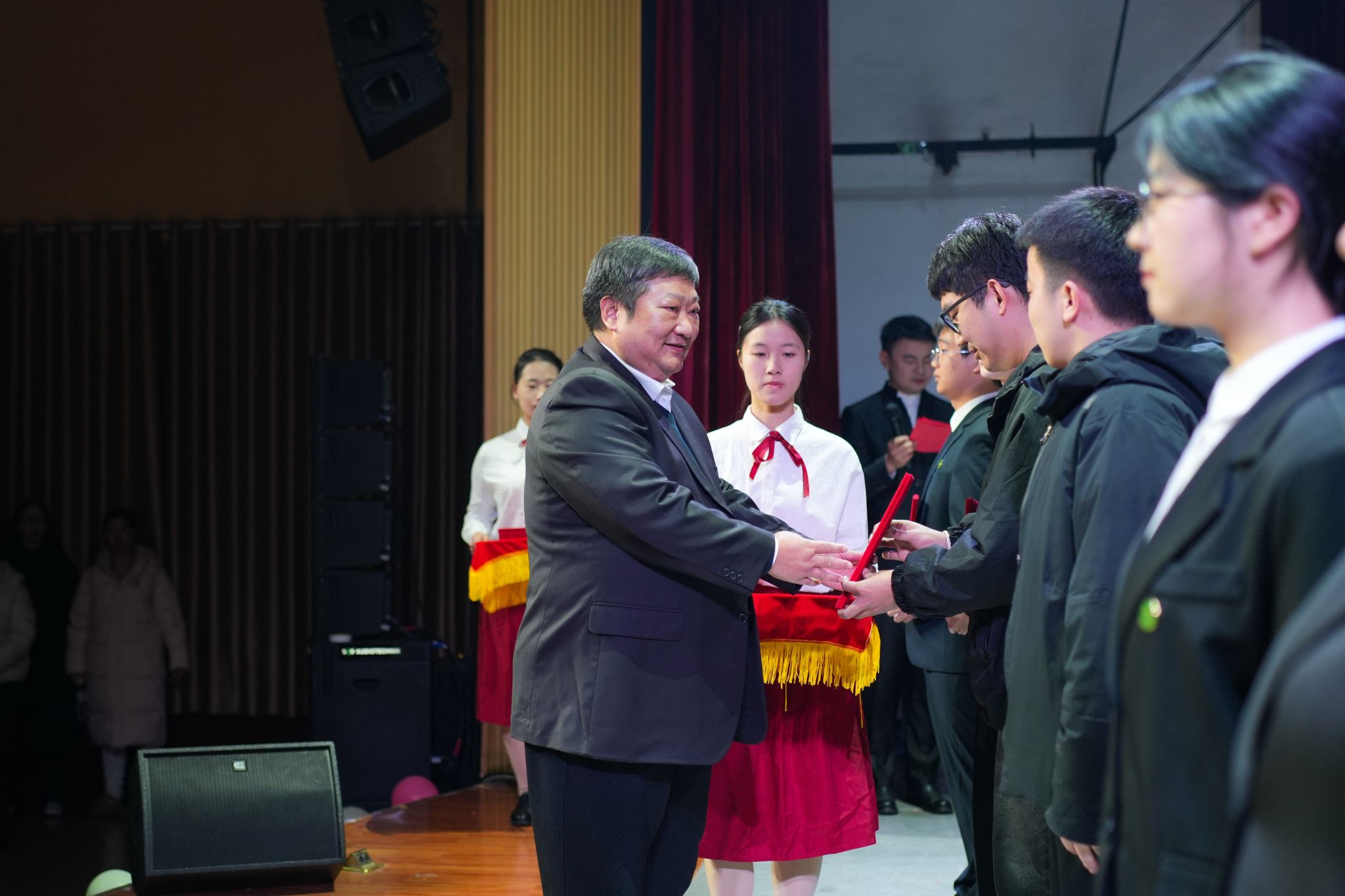 杭波为优秀学生团队代表颁发荣誉证书