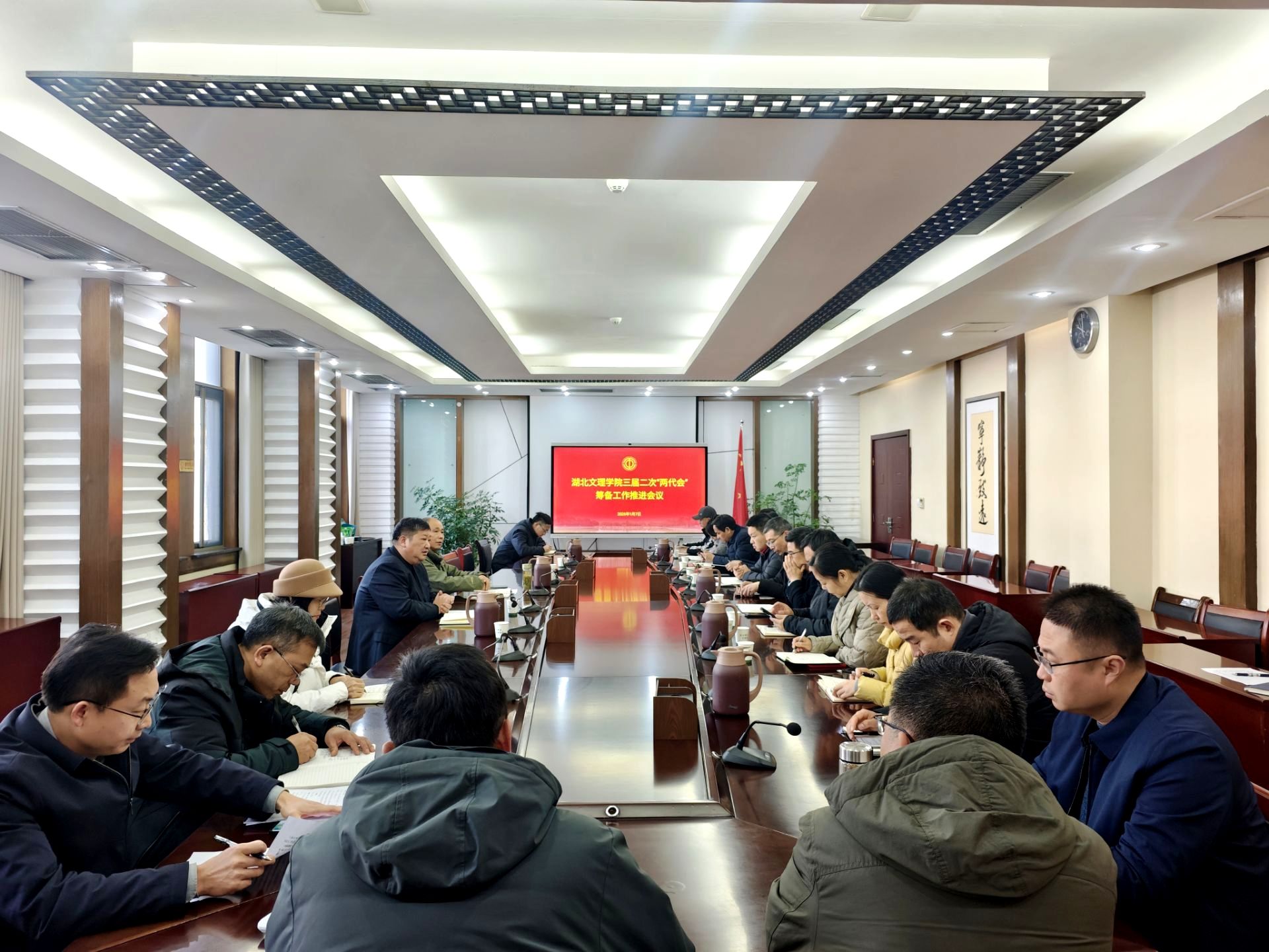(工会 通讯员 潘清玉 王勇)1月7日,学校召开三届二次教代会暨工代会筹备工作推进会。副校长曹健出席会议并对大会筹备工作提出要求。工会常务副主席刘浩主持会议。三届二次教代会暨工代会筹备工作委员会全体成员、各代表团团长及秘书参加会议。
