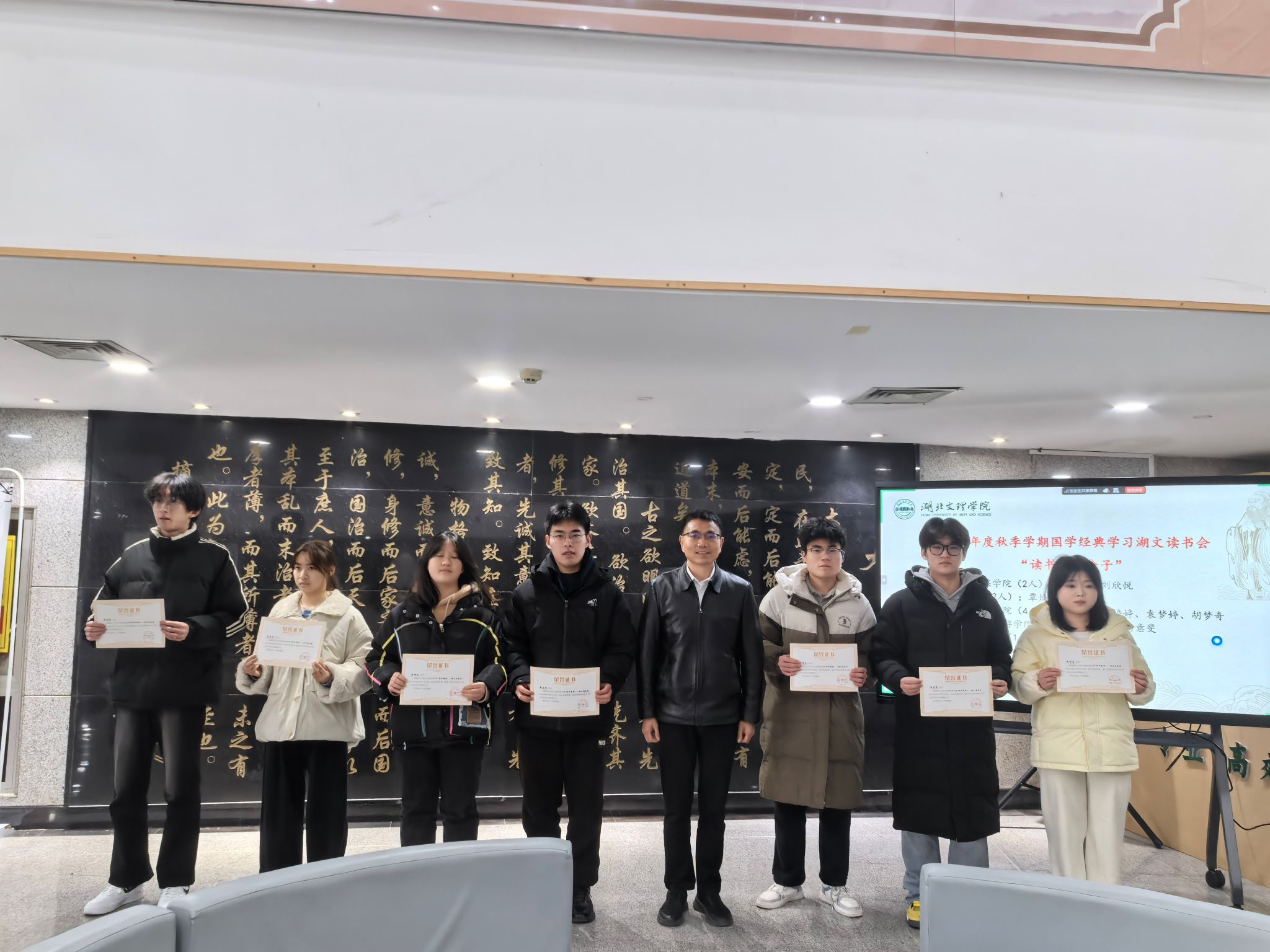 高慧霞回顾了2025年度读书会取得的成果。2025年度,共举办31期主题读书会,完成了“信、孝、廉、礼、爱、俭、善”等“修德”主题,“志、淡、慎、和、静、无、舍”等“修心”主题,以及“健、康”等“修身”主题的研读任务,并配套开展了主题征文、读书日分享、健身专项实践等丰富多彩的践行活动,推选5名湖文读书会·国学经典名师,制作了9期主题短视频。高慧霞指出,读书会的影响力已超出校园,成功承办全国“25+高校经典研读共同体”主题研讨会,学校获评“25+高校经典研读共同体”第三期、第四期经典研读活动“先进单位”,读书会获评“襄阳市优秀阅读群体”,获批湖北省期刊发展扶持资金和全民阅读活动扶持资金资助项目,案例入选第三届“湖北十佳社科普及创新案例”,育人经验在新华社、《光明日报》《湖北日报》等主流媒体宣传报道,有效提升了学校的文化软实力。