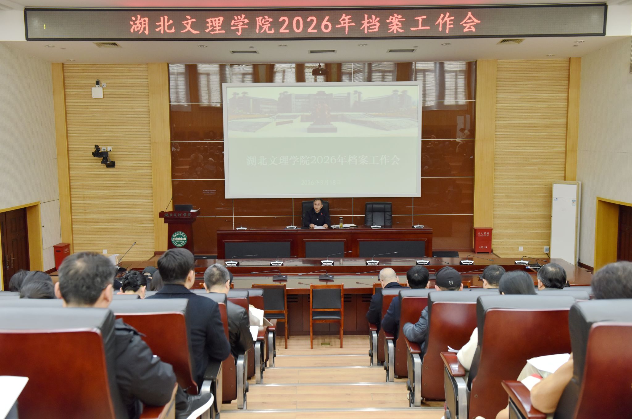 (档案馆 通讯员 谢菲)3月18日,学校党委副书记、副校长张樊主持召开2026年档案工作会议。各归档单位分管档案工作负责人、兼职档案员及档案馆全体人员参加会议。