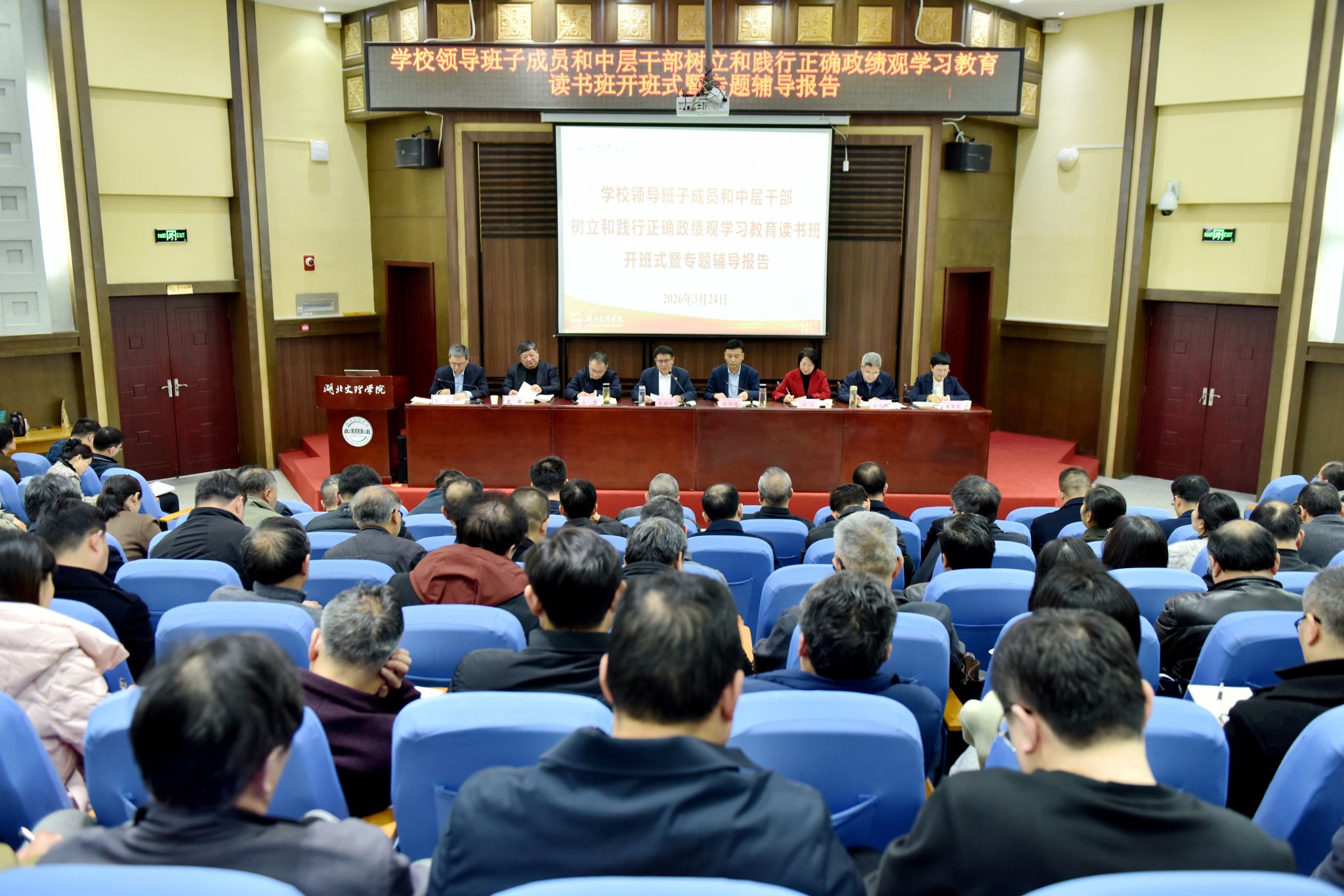 (通讯员 张明月)3月24日,学校举办领导班子成员和中层干部树立和践行正确政绩观学习教育读书班开班式暨专题辅导报告。学校党委书记吴超仲作开班式讲话和专题辅导报告,党委副书记、校长杜国锋主持会议。