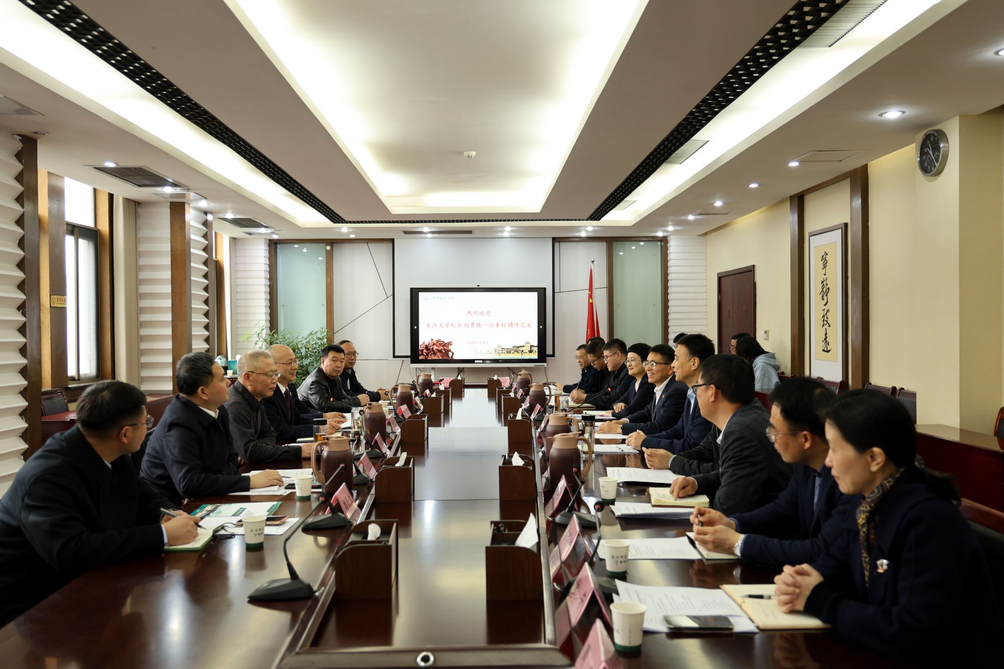 (校友处 通讯员 周飞)3月24日,长江大学校长刘勇胜、副校长许锋一行来校调研交流,并签署合作协议,学校党委书记吴超仲主持座谈会,校长杜国锋、副校长秦军荣出席座谈。