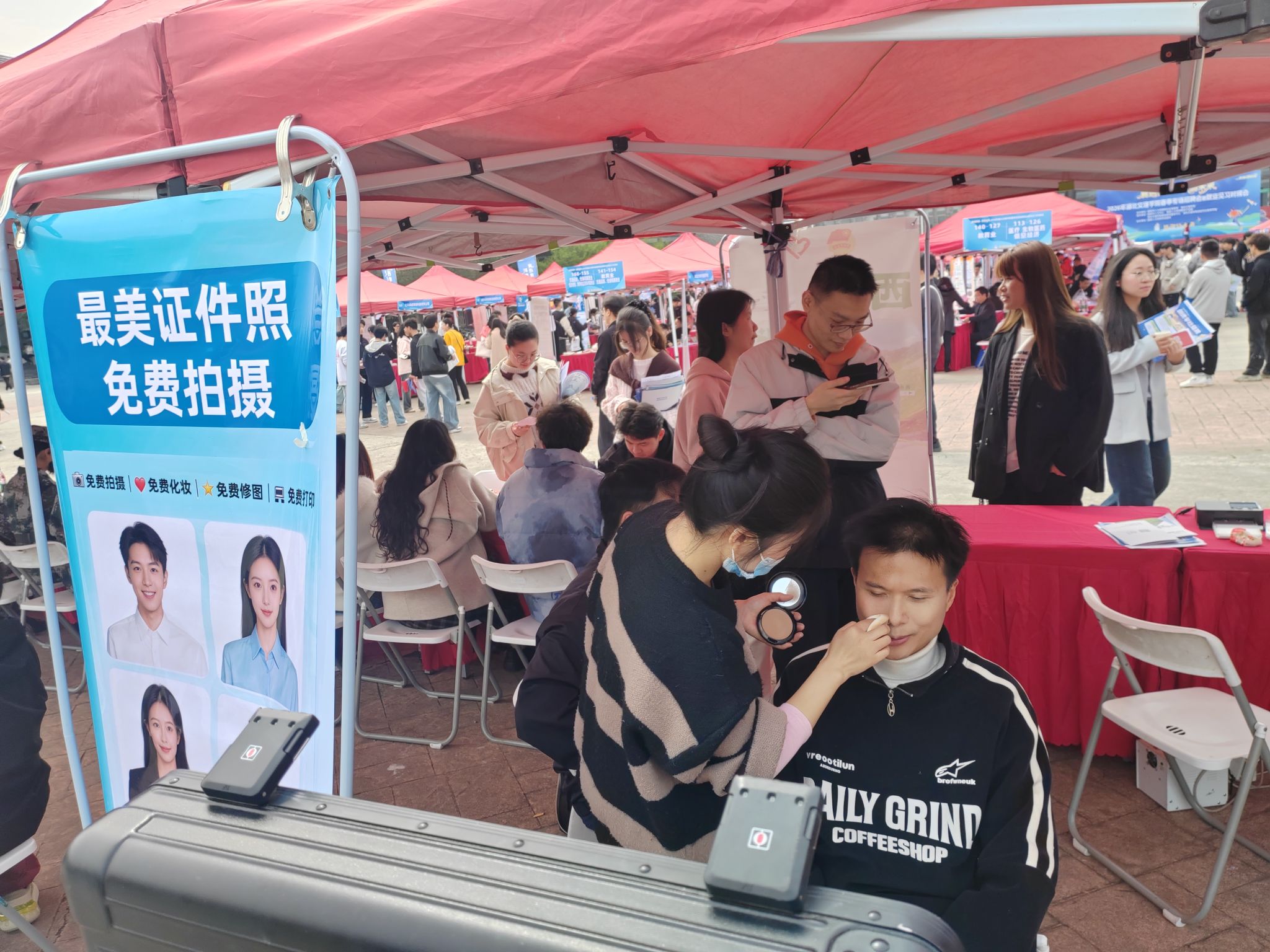 活动现场新增职业妆造设计及免费证件照拍摄,与简历诊断区联动形成一站式求职服务链;创业展示区集中展出10个本校优秀大学生创业团队项目,营造创业带动就业氛围,为现场学子提供创业帮扶,激发创业意愿。