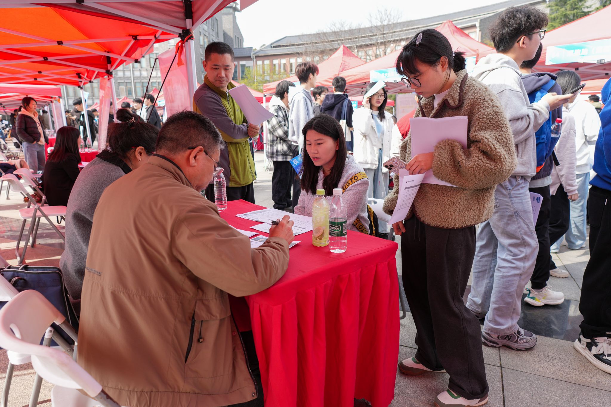 招聘现场,毕业生积极与用人单位沟通交流;各二级学院就业工作负责人及毕业班辅导员主动对接专业相关企业,推动人才供需精准匹配;部分非毕业年级学生也前来了解市场动态与招聘要求,为学业规划与就业准备奠定基础。