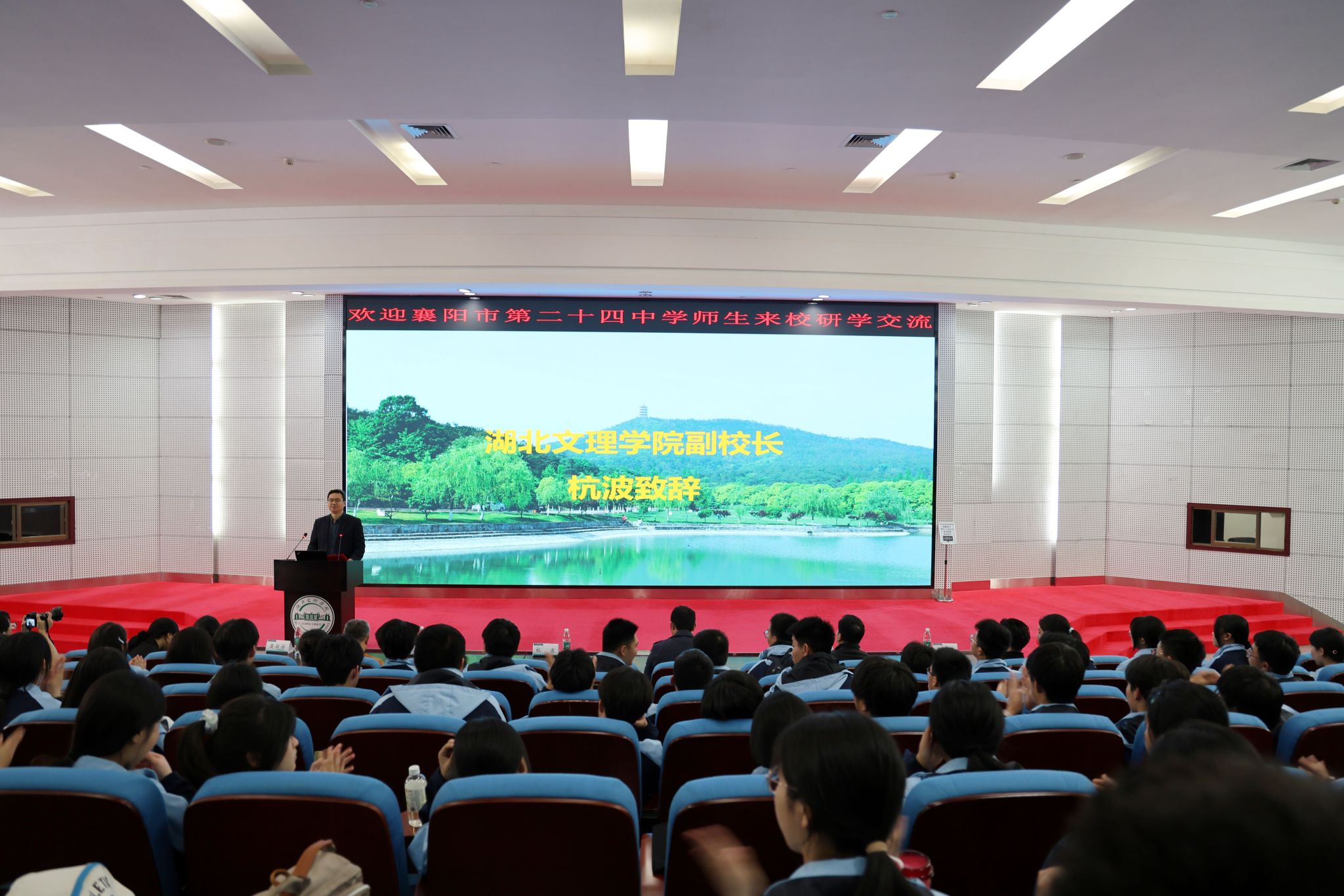 (招就处 通讯员 孙剑侠)4月14日,襄阳市第二十四中学党委副书记、校长王汉带领高一年级900余名师生来校开展研学实践活动。学校党委常委、副校长杭波接待来访师生。