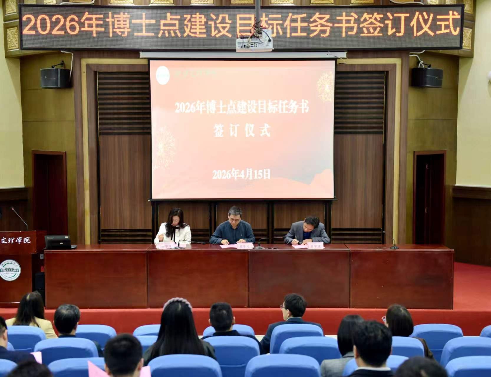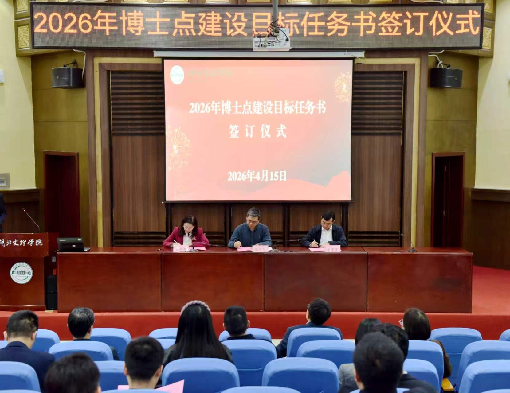 杭波与各博士点建设学科方向负责人代表签订了《湖北文理学院2026年博士点建设目标任务书》。