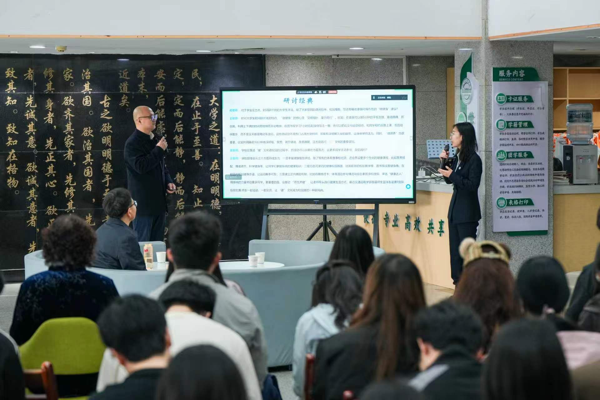 在研讨经典环节,师生围绕“健”这一主题展开热烈讨论。王超剖析当代大学生对“健”产生认知偏差的核心原因,指出碎片化功利化健康观念、重学业轻健康的误区、科学健康知识匮乏是主要因素。他强调,“健”是对个人、家庭、国家的三重责任,青年身心健康是强国兴邦的底气,并分享宿舍微健身、课间拉伸、爬楼梯等贴合校园生活的实操方法。高慧霞引导大家反思日常健康习惯,鼓励师生将健康理念融入点滴生活。