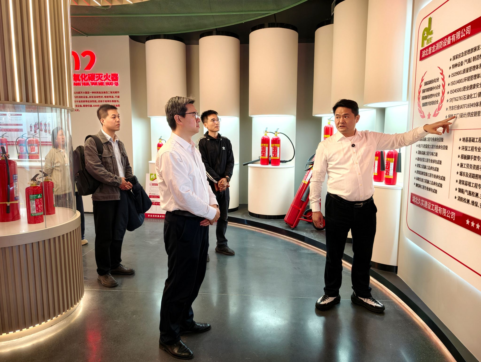 期间,杭波一行参观了企业消防科普展厅、智能化监控中心及生产车间,详细了解了企业在消防设备研发、智能互联技术应用及安全生产管理等方面的最新成果与运营模式。