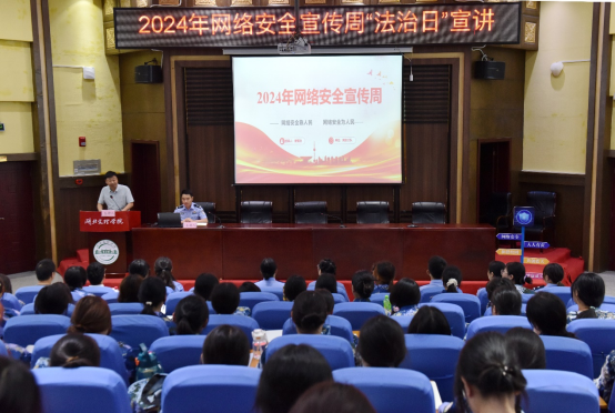(保卫处 通讯员 唐甜甜)9月11日上午,学校举行2024年网络安全宣传周“法治日”宣讲会,邀请襄阳市襄州区公安局网安大队教导员曾繁浩开展网络安全教育主题宣讲。襄阳市公安局网安支队、襄阳市检察院、襄阳市司法局、襄阳市律师协会等单位代表及我校学生代表参加此次宣讲会。宣讲会由保卫处副处长卓阳主持。