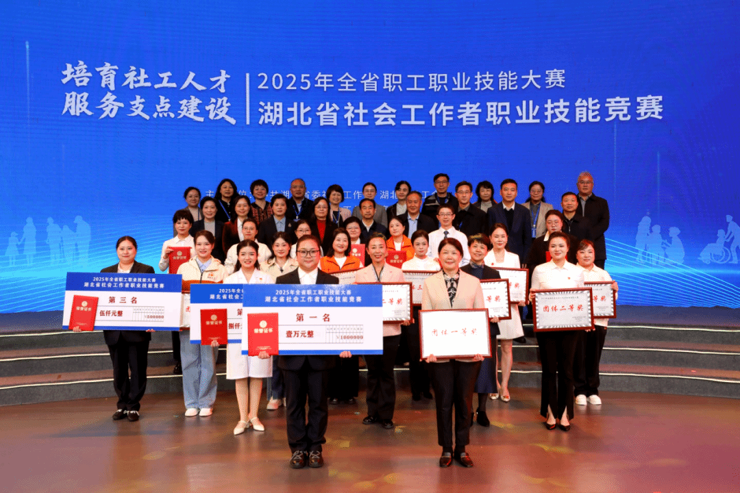 项目展示结束后,徐道稳对赛事整体表现进行点评,并宣布最终成绩。学校校长杜国锋等为获奖团队和个人颁奖,个人奖项中,来自武汉的选手赵丽娟凭借出色的综合表现荣获第一名,来自襄阳的雷凭、来自武汉的李珊分获第二、三名,前十名选手共同获得了大赛颁发的荣誉证书。团体奖项方面,武汉市江汉区“友谊阳光”代表队凭借社区精神康复的生动实例荣获团体一等奖;襄阳市“愈见天使”队、武汉市汉阳区“知音”队、黄石市“益同烟火”队获团体二等奖;武汉市武昌区“了不起的居民”队、襄阳市“义暖襄城”队、黄石市“火炬社工”队、鄂州市“信访跟办员”队、襄阳市“益童先锋”队、鄂州市“社区筑梦人”队获团体三等奖。