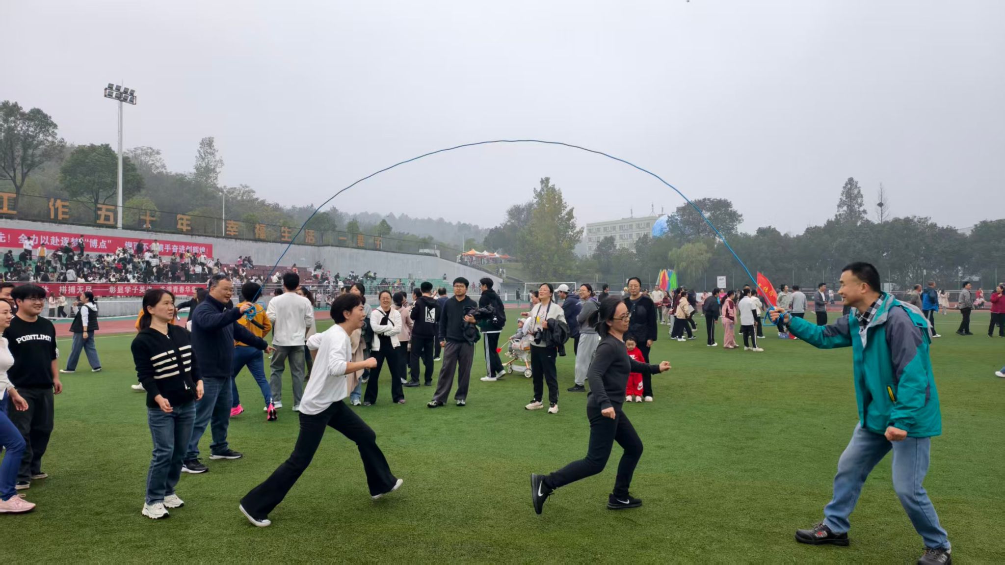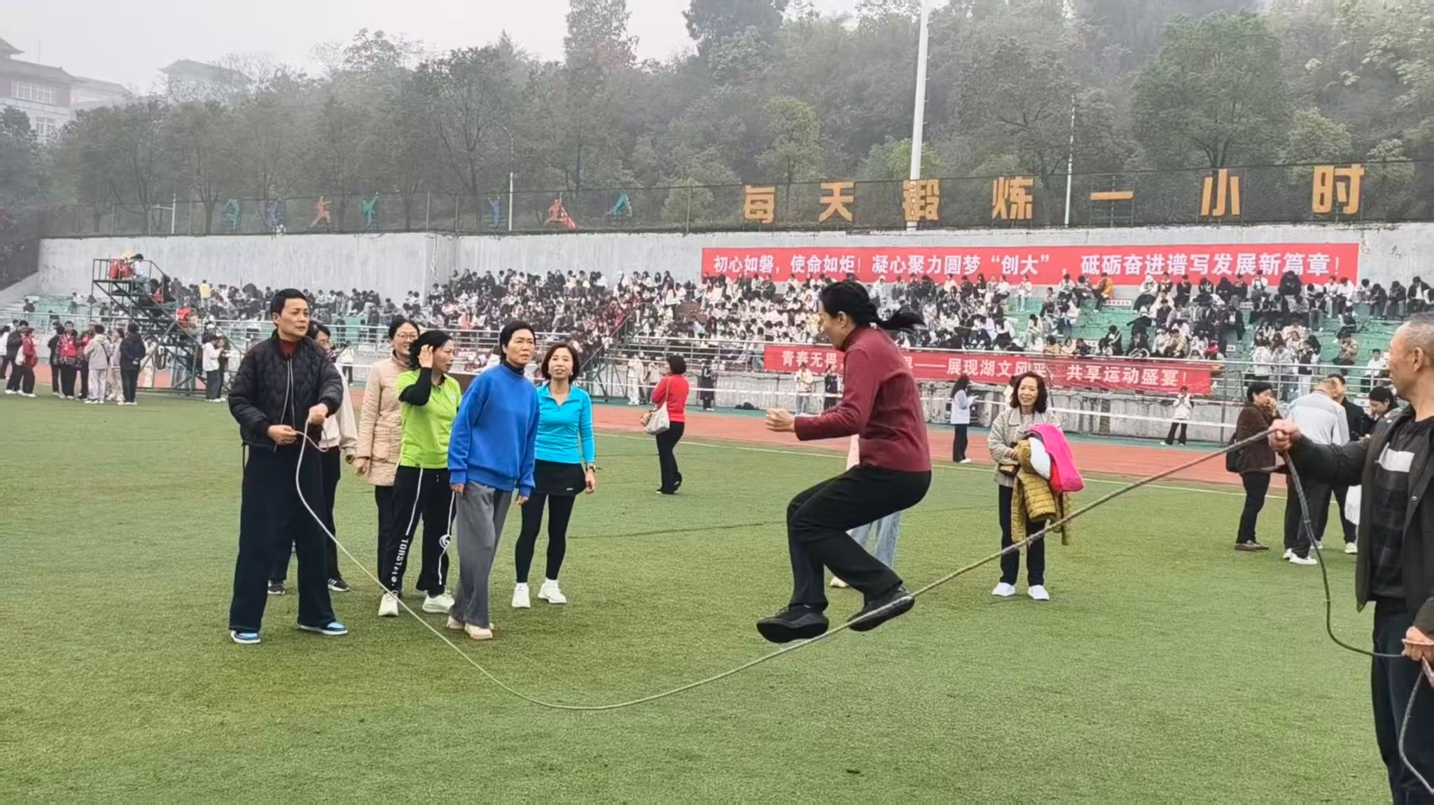 随后的跳绳比赛中,长绳如波浪般翻飞起伏,教师们身姿轻盈、穿梭有序,配合默契的精彩表现赢得现场阵阵喝彩。